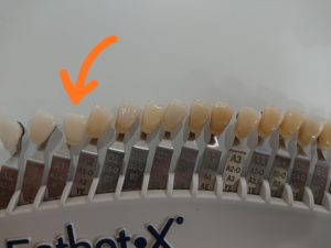 色の対比効果で、肌が白い人ほど歯の色が暗く見えて
