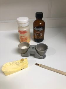 粉と液体を混ぜて固めるのですが